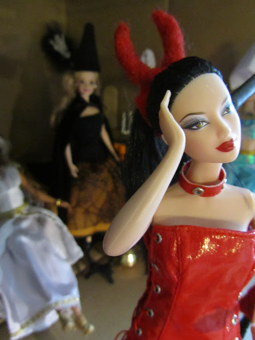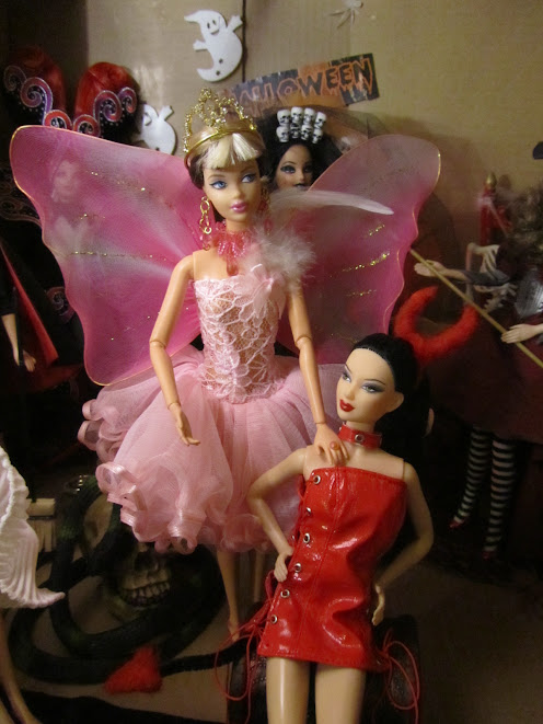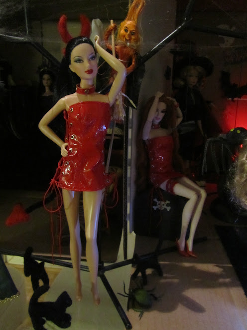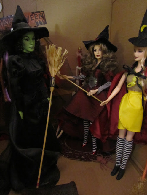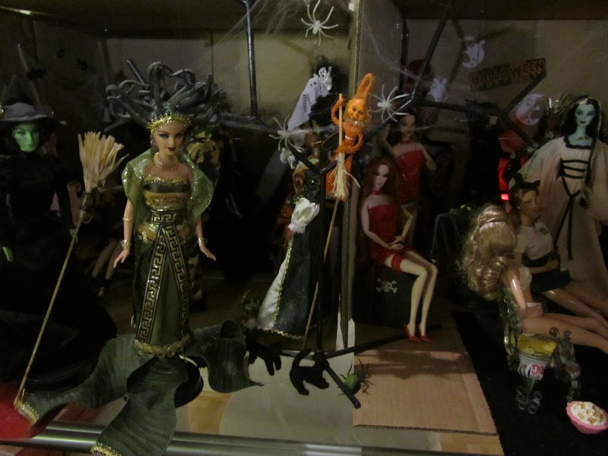 Ninnin nuket: The Munsters, Jane Twilight, Countess Dracula by Bob Mackie, Wicked Witch of the East, Wicked Witch of the West, Bewitched, Marilyn Monroe Seven Year Itch, Sugar Plum Fairy, Integrity Toys Eternally Together Lucy sekä OOAK Halloween Vampire Queen, Medusa, Vanity ja Wrath by Dakotas.song USA sekä OOAK Akasha Queen of the Damned, Jessica True Blood ja Selene Underworld
