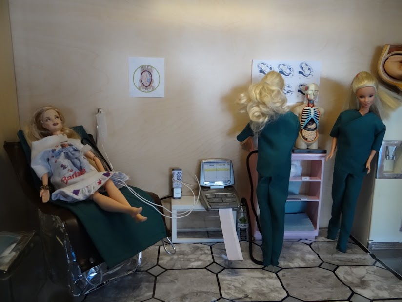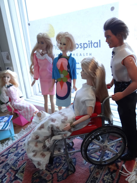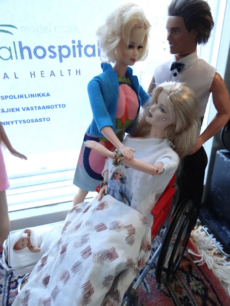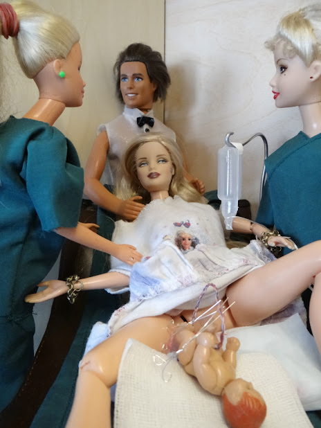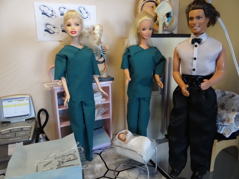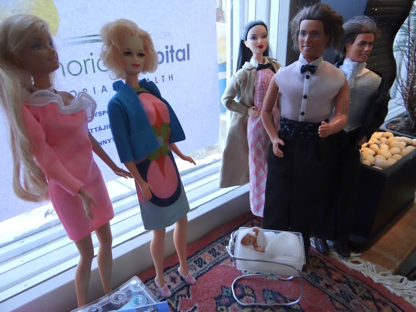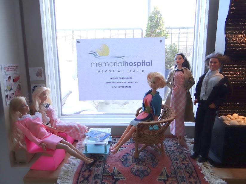 Avasundin Tohtori Aurinkoinen, kätilöt, vauva ja Benetton Ken