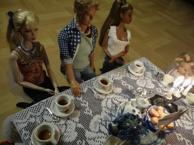 Myös Caitlin lapsineen sekä Aida ovat tulleet ja porukka juo joulukahveja Shanian keittiössä.