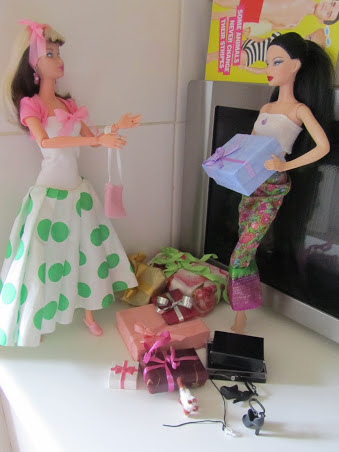 Tytöt istahtavat hetkeksi ja Shania availee innoissaan lahjojaan! Nichelle joutuu pitämään kissaansa aisoissa, se kun olisi niin kiinnostunut lahjojen avaamisesta.