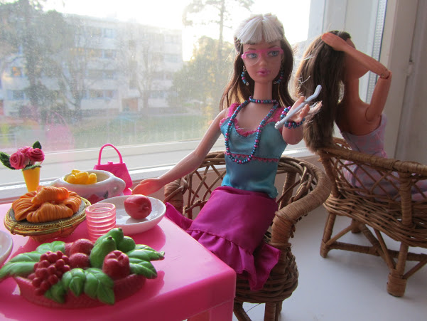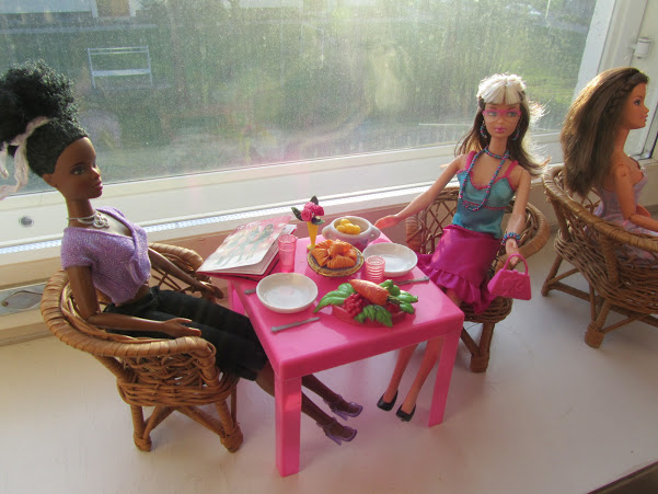 Seuraavana aamuna tytöt ovat aamiaisella Hélpòtüksen ravintolassa.